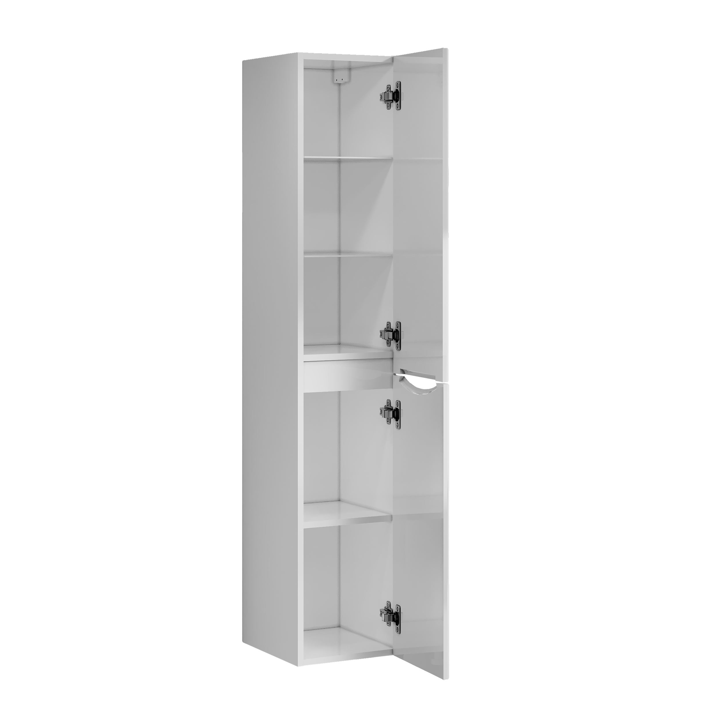 Подвесной пенал для ванной «ВИСТА-30 см» (правое открывание) – функциональная и стильная модель в современном дизайне. Корпус и фасады выполнены из влагостойкого МДФ в белом глянце, устойчивом к влаге и удобном в уходе. Пенал оснащён двумя распашными дверцами с петлями-доводчиками для плавного и бесшумного закрывания, а интегрированные ручки подчёркивают лаконичный дизайн. Внутри расположены 4 удобные полки для хранения. Размер изделия: 30×34,9×155 см. Подвесы для крепления входят в комплект. Отличное решение для организации пространства ванной комнаты в современном стиле.