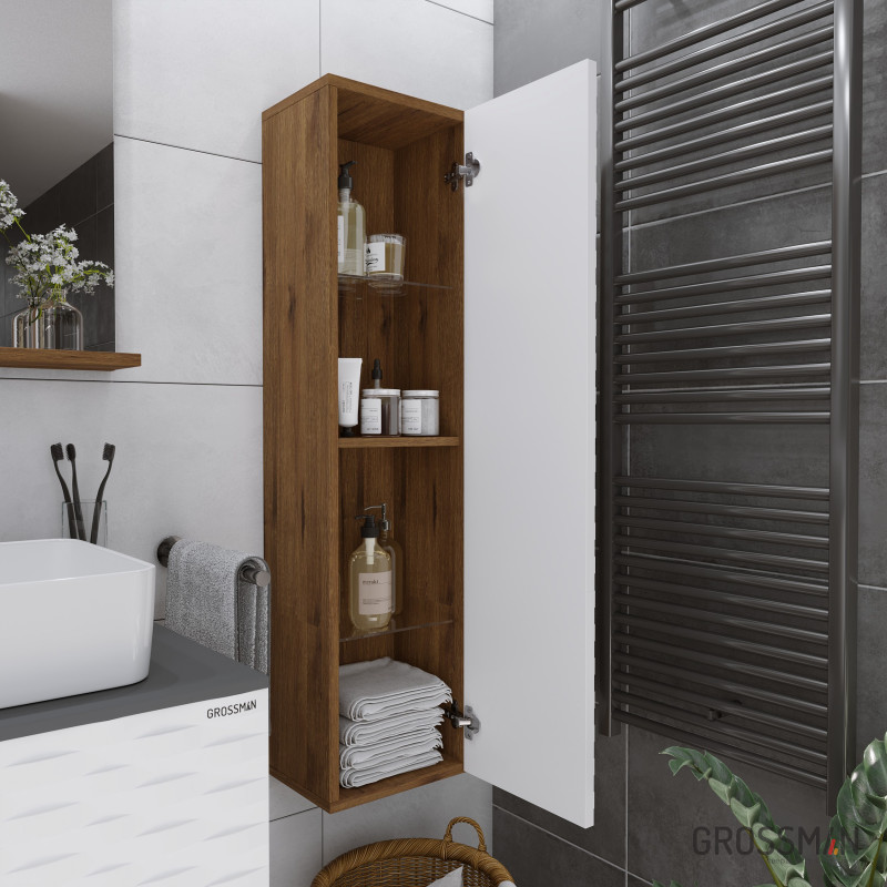 Подвесной пенал Альба-30 см. Белый матовый цвет с 3D рисунком. Безупречно сочетается с фактурой под дерево и позволяет тумбе органично вписаться в интерьер ванной комнаты. Современный прямоугольный пенал, корпус выполнен из ЛДСП. Фасад изделия выполнен из МДФ и покрыт матовой пленкой.