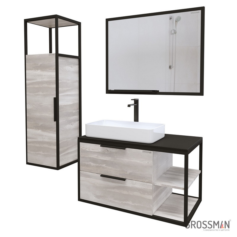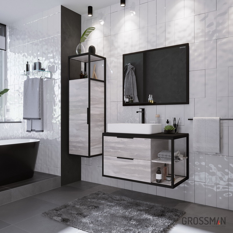 Подвесной пенал Лофт-90 образует дополнительное пространство для хранения средств гигиены и аксессуаров, обеспечивая максимальную эргономичность ванной комнаты. Внутреннее пространство пенала поделено полками на 3 секции. Интегрированный профиль из анодированного металла придаст интерьеру брутальности, присущий стилю лофт. Дверь снабжена механизмом плавного закрывания. Корпус и фасады пенала выполнены из влагостойкого ЛДСП, устойчивого к перепадам температур и высокой влажности, крепится к стене. Ручка и подвесы - в комплекте.