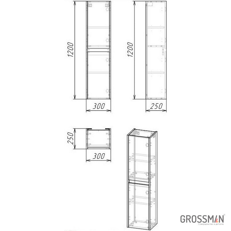 Подвесной пенал Смарт-30 образует дополнительное пространство для хранения средств гигиены и аксессуаров, обеспечивая максимальную эргономичность ванной комнаты. Внутреннее пространство пенала поделено полками из ЛДСП на 4 секции. Двери комплектуются петлями с доводчиком. Фасады без ручек с системой открывания «Push to open»