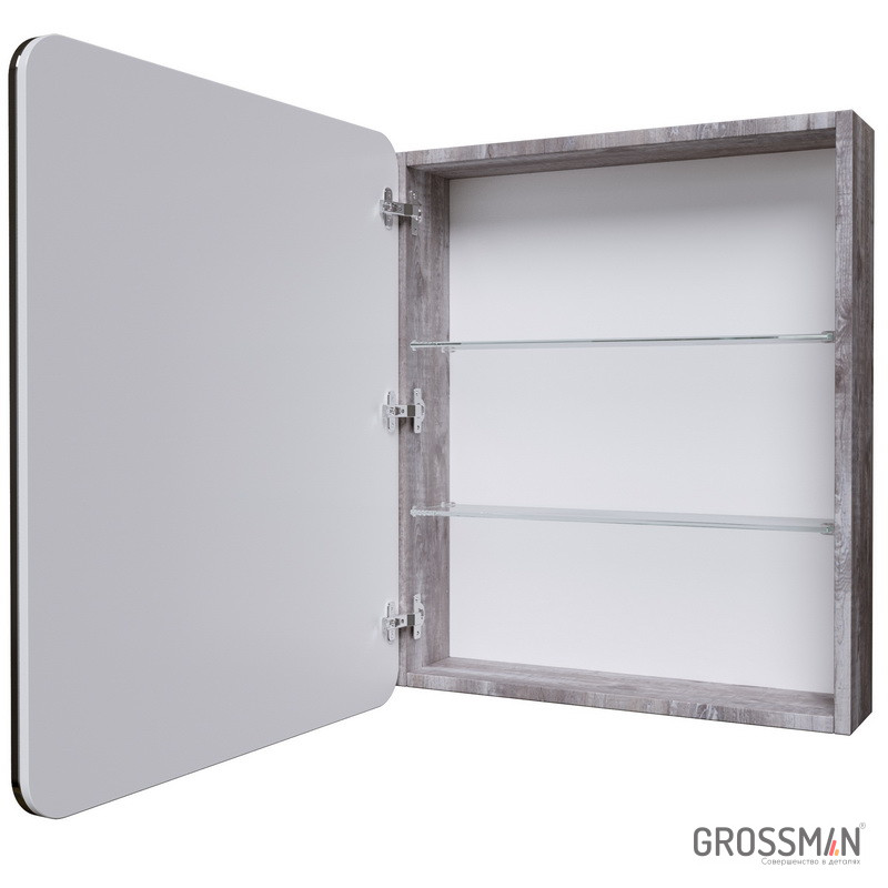 Шкаф-зеркало Талис-60 см позволяет эффективно использовать пространство ванной комнаты, обеспечивая быстрый доступ к самым необходимым предметам, при этом не создавая визуальный шум. Просторный шкаф вмещает в себя две стеклянные полки. Корпус выполнен из влагостойкого ЛДСП в цвете бетон пайн. Дверца шкафа открывается за фасад и комплектуется петлями с доводчиком.