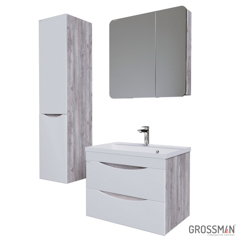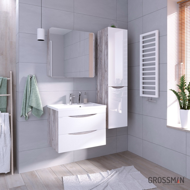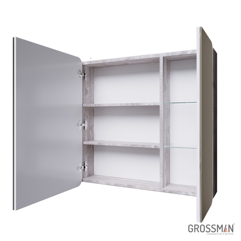 Шкаф-зеркало Талис-70 см позволяет эффективно использовать пространство в ванной комнате, обеспечивая быстрый доступ к самым необходимым предметам, при этом не создавая визуальный шум. Просторный шкаф с двумя распашными дверцами вмещает в себя два отсека. В левом отсеке две полки из ЛДСП, в правом две полки из стекла. Корпус выполнен из влагостойкого ЛДСП в цвете бетон пайн. Дверца шкафа открывается за фасад и комплектуется петлями с доводчиком.