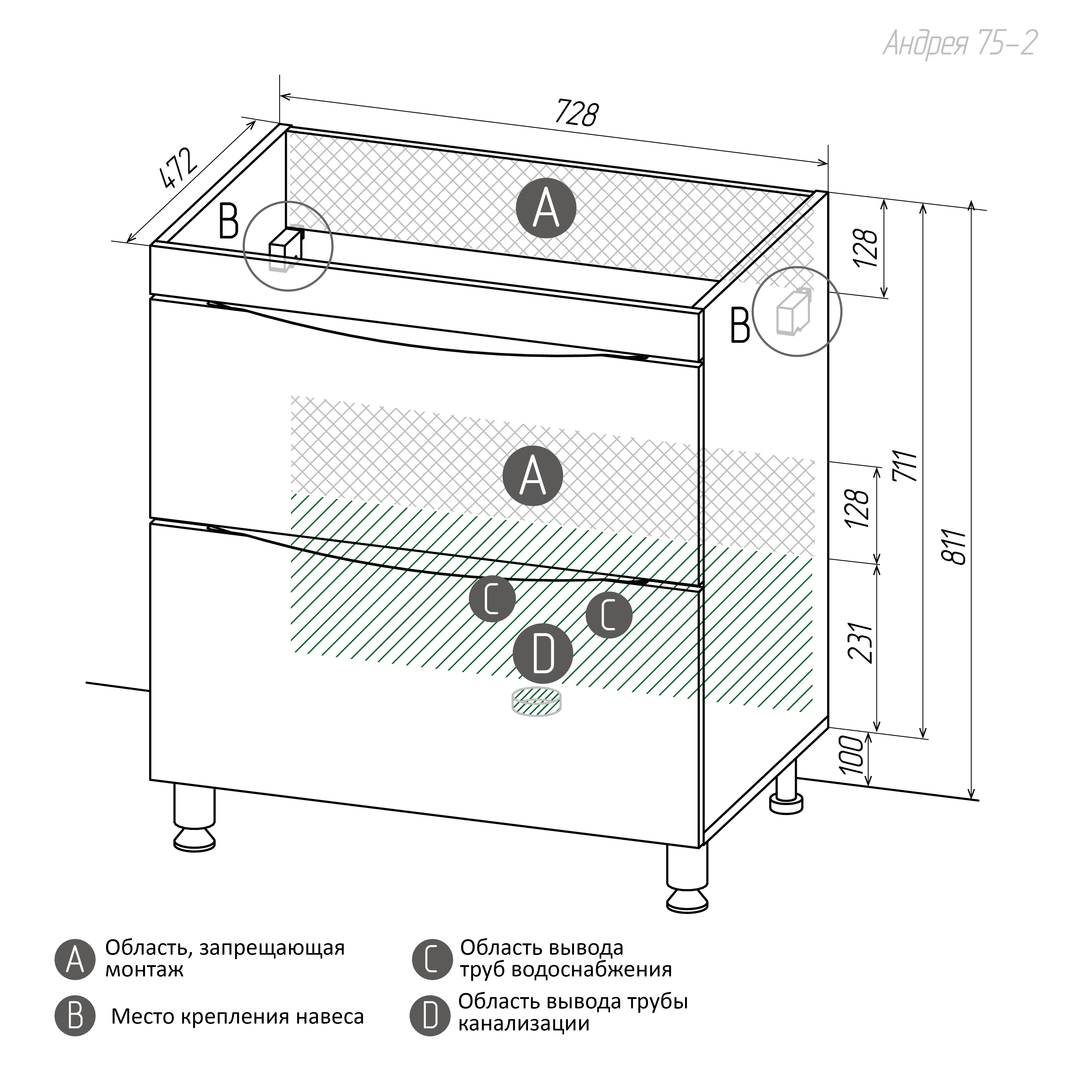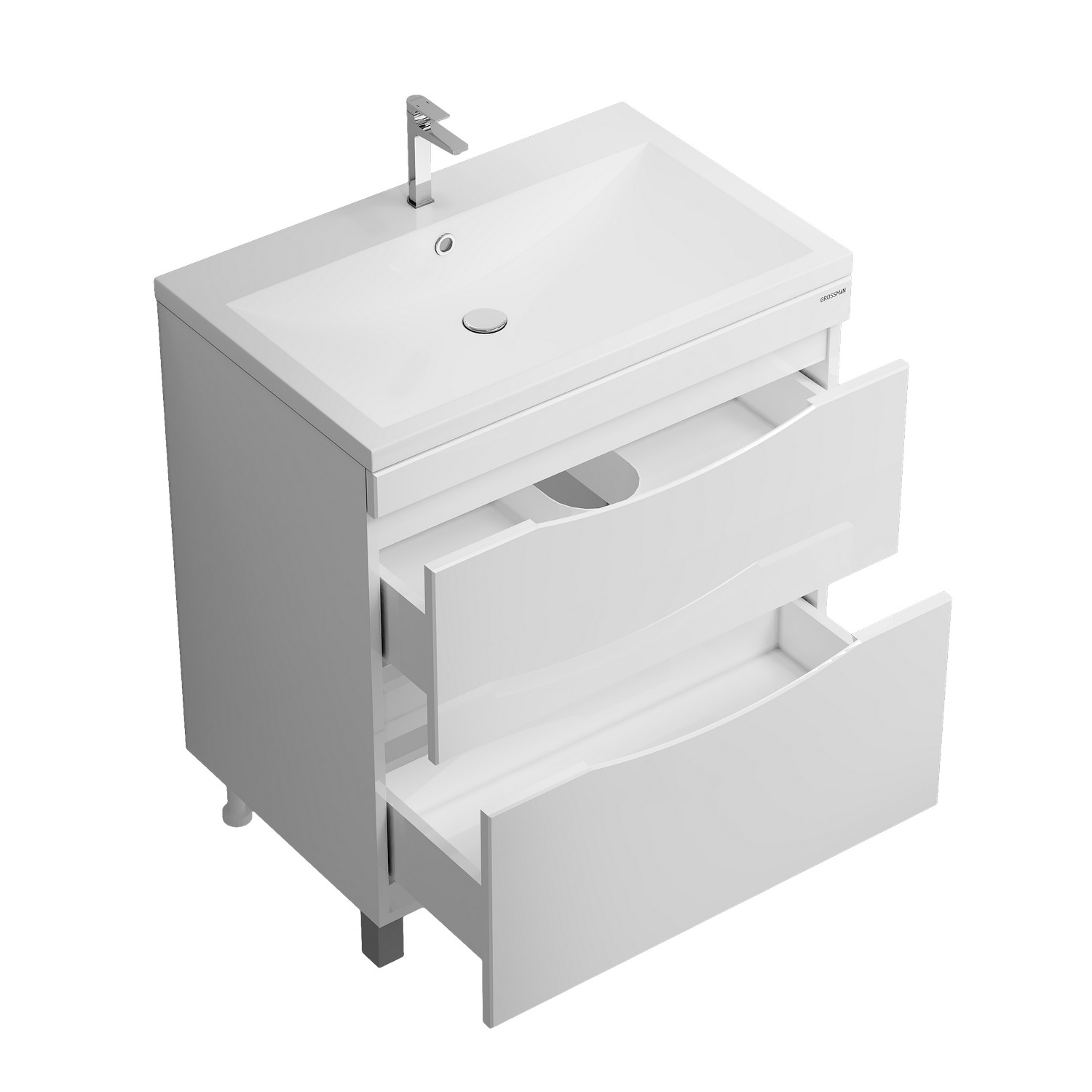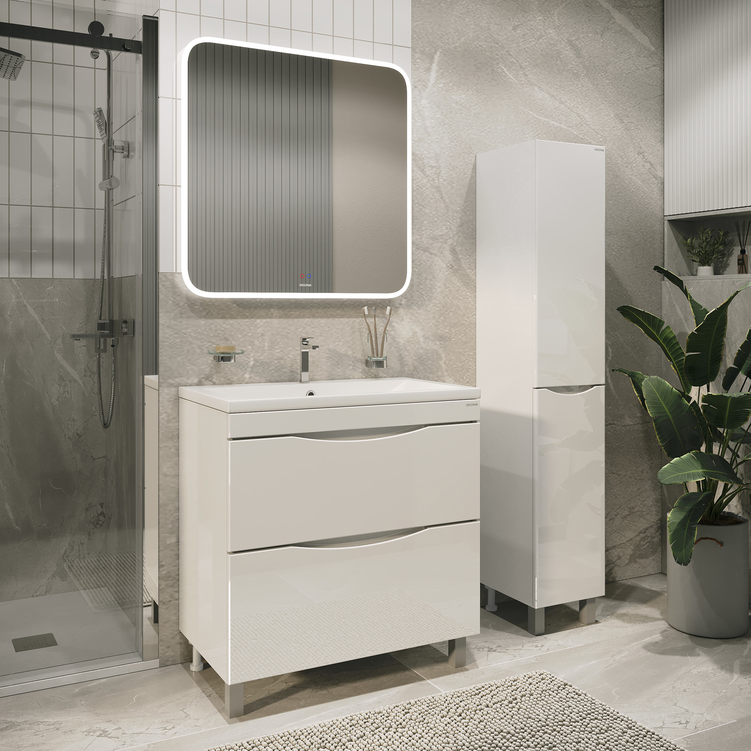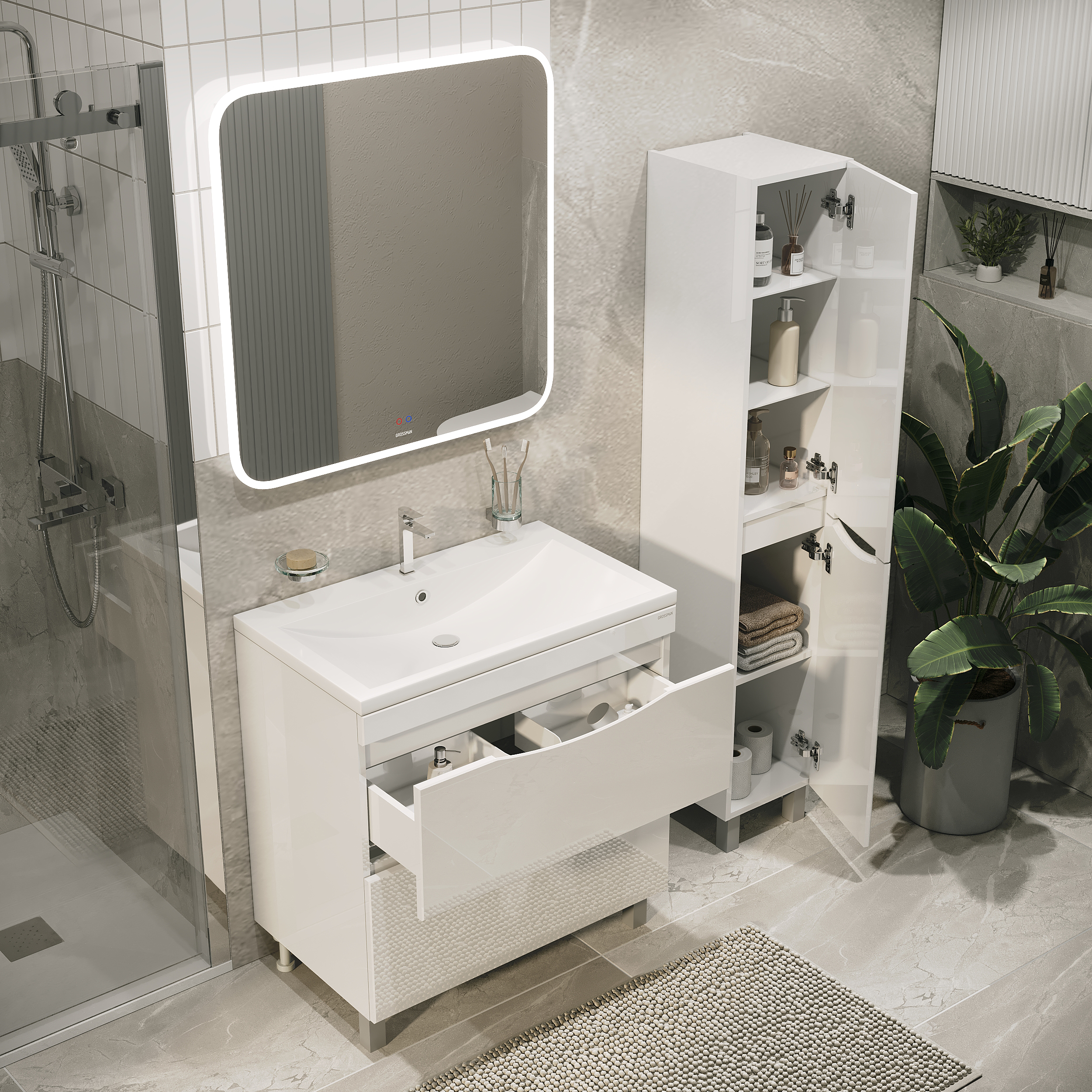 Тумба напольная для ванной «ВИСТА-75 см» – современное и практичное решение для стильного интерьера. Корпус и фасады выполнены из влагостойкого МДФ в белом глянце, что гарантирует долговечность и простоту ухода. Два вместительных ящика оснащены скрытыми направляющими с доводчиком и удобными интегрированными ручками с плавными линиями. Размеры тумбы: 72,8×47,2×81 см. В комплект входят хромированные ножки высотой 10 см и подвесы для надежного крепления. Совместима с умывальником ALICE 75 см и напольным пеналом «ВИСТА-30 см» (правый/левый). Отличный выбор для ванной в современном стиле: функционально, стильно и удобно.