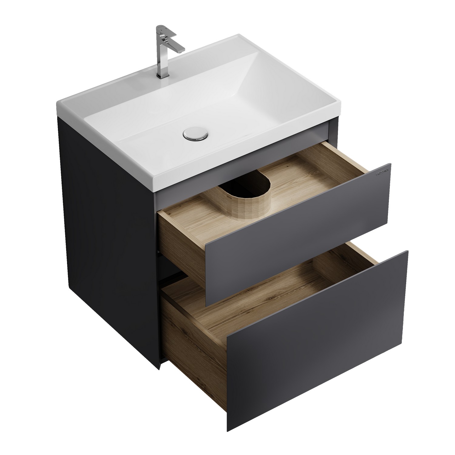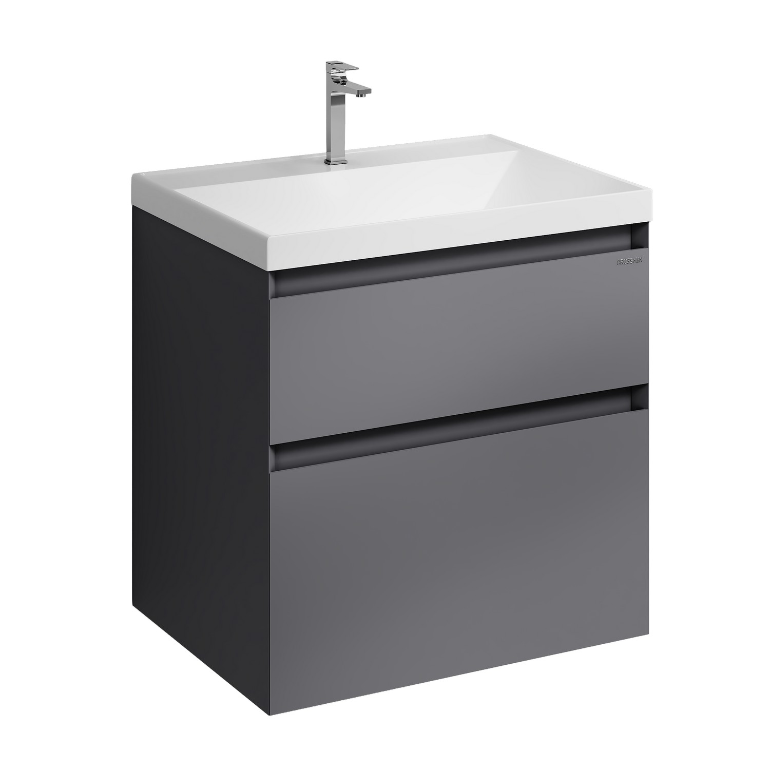 Подвесная тумба для ванной «МЕРКАДО-60 см», графит матовый – современное и практичное решение для интерьеров в скандинавском и современном стиле. Корпус и фасады выполнены из МДФ в матовой краске в цвете графит. Фасады с точным запилом под 45° на торцах, что исключает видимую кромку и позволяет обходиться без ручек, создавая минималистичный и аккуратный дизайн. Два вместительных ящика изготовлены из ЛДСП «дуб Эльвезия» и оснащены направляющими скрытого монтажа с доводчиком, обеспечивающими плавное и бесшумное закрывание. Для надёжного крепления к стене предусмотрены подвесы в комплекте. Модель совместима с умывальником Классика-60. Представлена в трёх размерах (60, 70, 80 см). Отличный выбор для тех, кто ценит современный минимализм, функциональность и высокое качество мебели для ванной комнаты.