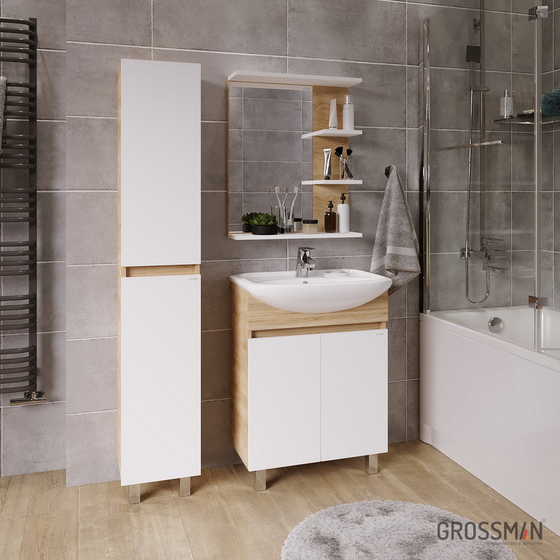 Тумба напольная ПОЛО-60 это симбиоз функциональности, природной красоты, древесной текстуры и современного дизайна в доступном ценовом сегменте. Компактные габариты позволяют грамотно организовать небольшой санузел, а сочетание структуры натурального дерева с белой глянцевой отделкой гармонично впишется в интерьер любой ванной комнаты. Интегрированные в фасад ручки делают тумбу более удобной и практичной. Тумба выполнена из ЛДСП, устойчивой к механическим воздействиям, перепадам температур и высокой влажности.