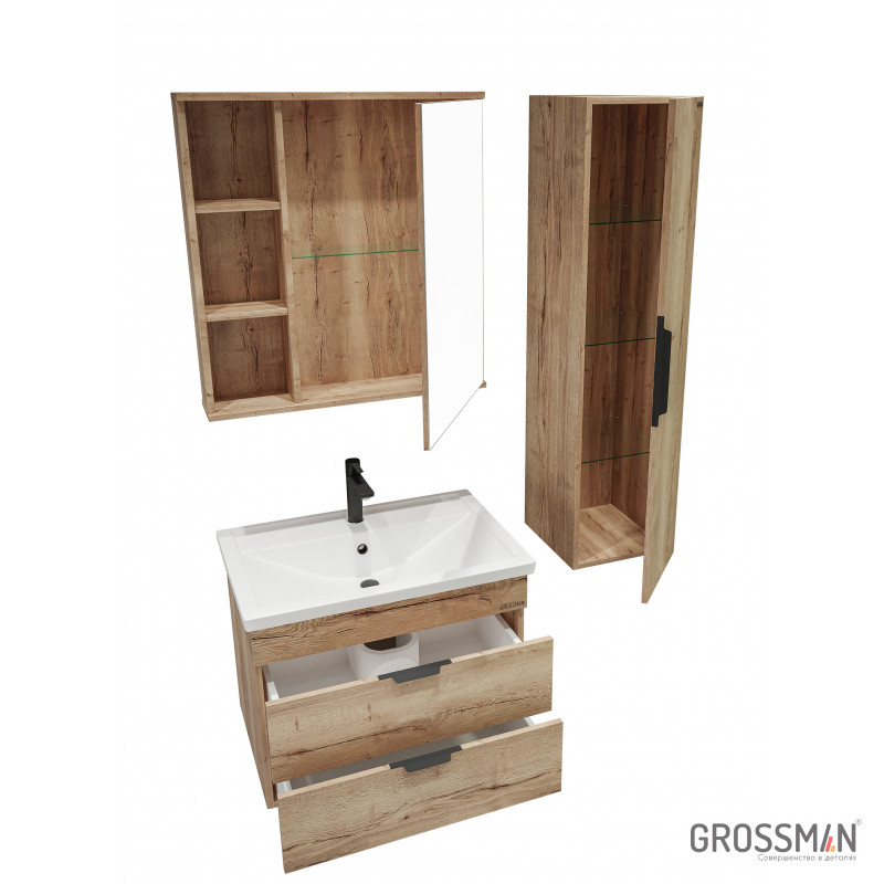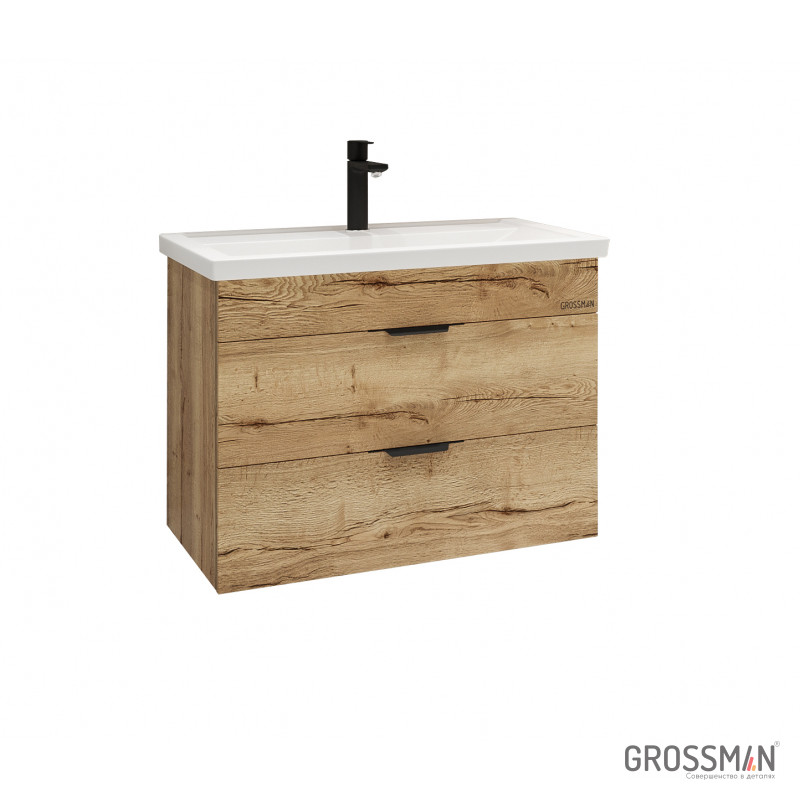 Тумба подвесная Форта 70 см - роскошная текстура и натуральный цвет дуба, а матовые металлические ручки добавляют современный дизайн и строгий стиль.