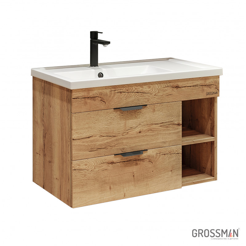 Тумба подвесная Форта 80 см - роскошная текстура и натуральный цвет дуба, а матовые металлические ручки добавляют современный дизайн и строгий стиль.