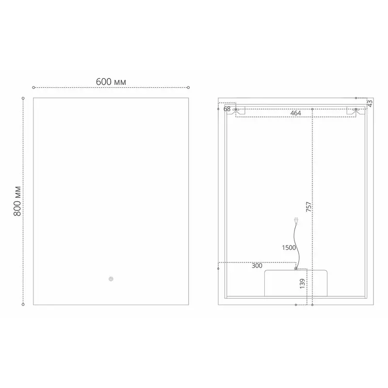 Зеркало Grossman Pragma-норма 60 х 80 см, LED подсветка, подогрев, 186080