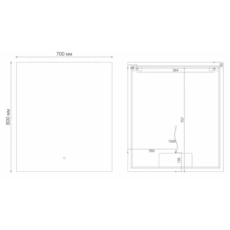 Зеркало Grossman Pragma-норма 70 х 80 см, LED подсветка, подогрев, 187080