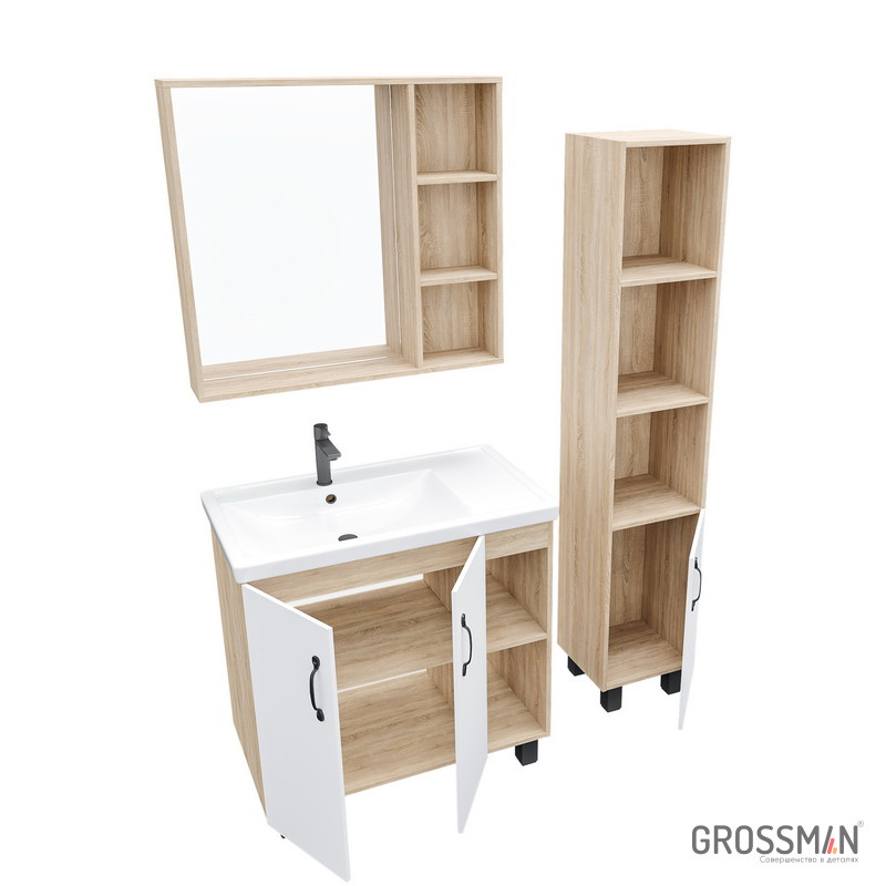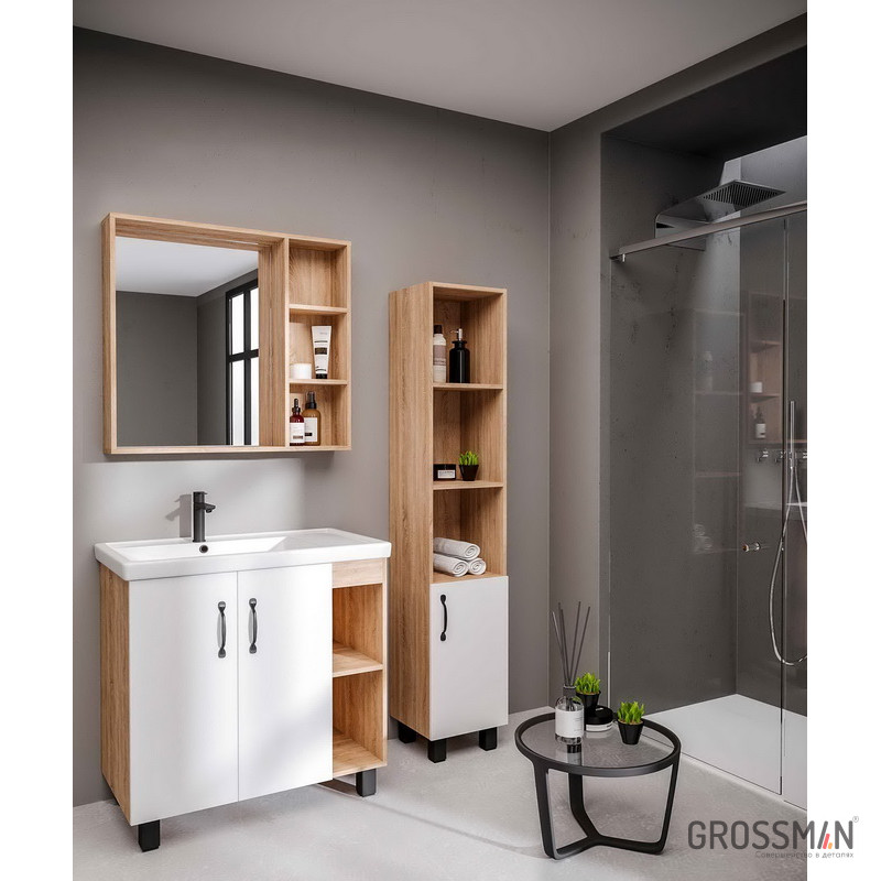 Зеркало Флай 80 см отражает современные тенденции в дизайне мебели для ванных комнат: минимализм с простыми и понятными формами, цвета дуба с текстурой, отсутствие лишних деталей. Открытые полки обеспечивают быстрый доступ к аксессуарам. Зеркальный шкаф изготовлен из ЛДСП, устойчивой к механическим воздействиям, перепадам температур и высокой влажности.