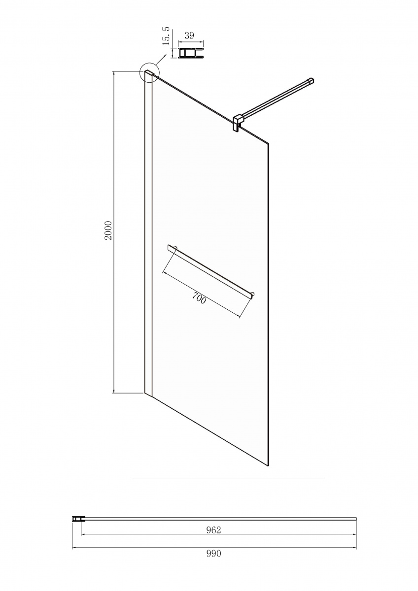 Душевая перегородка Ambassador Walk-in 15031235 размер 100x200