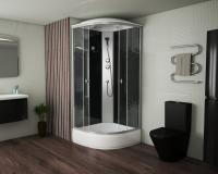 Кабинка относится к качественному и недорогому сегменту, полная комплектация; тропический душ, дополнительная лейка, полочка.Поддон сделан из акрила, усиленный, нагрузка до 300 кг, есть бортик по периметру и дренажные каналы.
