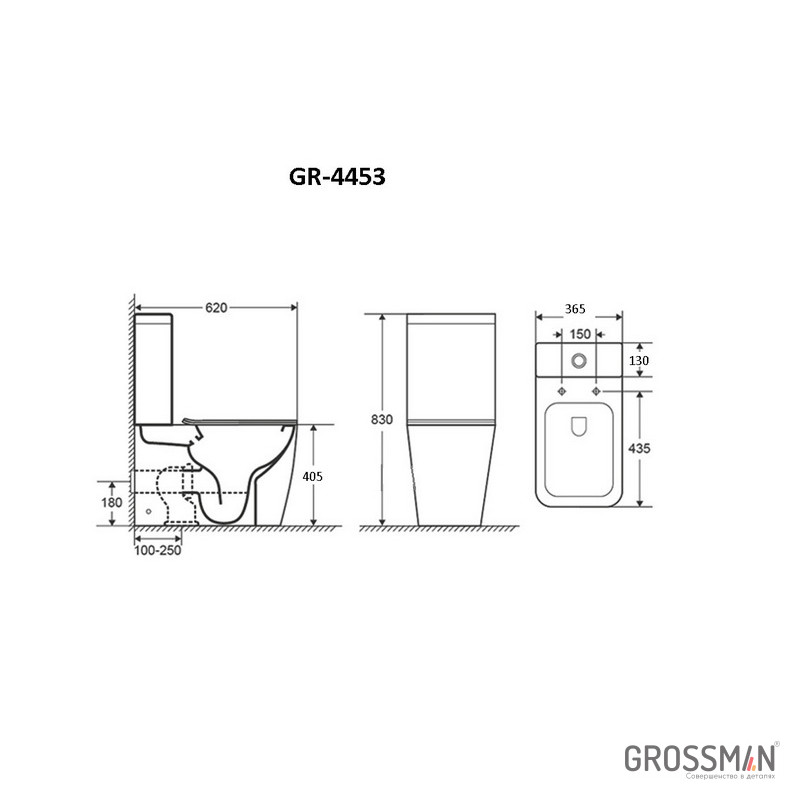 - Унитаз напольный с бачком и сиденьем;